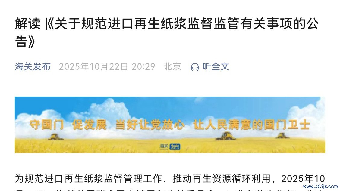 规范进口再生纸浆监督监管,海关总署三解读仅经过简单分类、剪切、打包等处理的废纸碎片,仍属于禁止进口的固体废物。